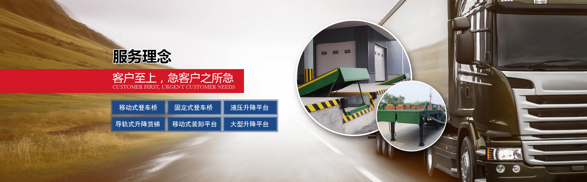 隨著國內及國際市場需求的不斷擴大,公司也在不斷引進國內外的先進技術來充實自身。公司先后設計研發出了,大小型貨車配裝的:汽車液壓尾板,叉車裝卸貨用的:移動式登車橋;庫房外貨臺配裝的:固定式液壓升降平臺(貨臺高度液壓調節板);庫房內外高層輸送貨物:導軌式升降貨梯,液壓升降平臺,旋轉液壓升降臺,及百噸位大型升降臺,等多種的先進裝卸裝備,適應用于:工廠,廠礦,倉庫,化工,食品,郵政,流水線作業配套及物流運輸等眾多領域。